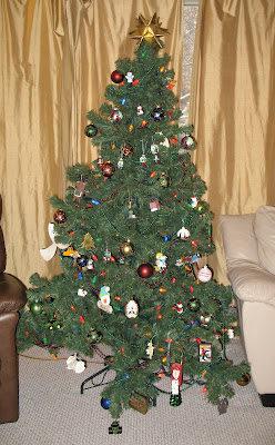 Oh yes, the Christmas tree. It’s a bit of a Charlie Brown tree, actually. It was a cheap tree that is now a decade old, and every year my husband puts it together and swears a little, but once it’s decorated I just love it. Also – notice how squished it is against the furniture – we cannot possibly have a larger tree. As it is it is reminiscent of Jenga, rearranging our house for this five foot tree.