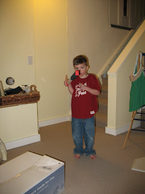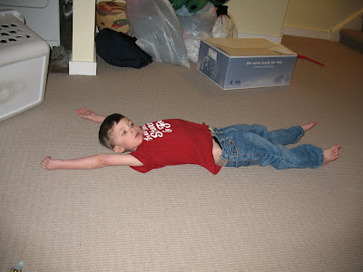 But of course cuddles, stories, and quiet games did constitute a large part of our day, along with freezies, a homemade batch of playdough, and copious amounts of TV. Hilarity ensued when Jake, rummaging through a backpack that had been unused for two years, found a pull-up diaper. He immediately pulled it on over his jeans and ran around the house saying “Goo goo ga ga, I’m a baby!” This entertained Mark for some time. Still, by mid-afternoon mind-numbing boredom kicked in for all three of us, so when Mark asked if he could use the camera – a request that is repeated several times a day and often results in some pretty strange photos – I agreed. He and Jake went downstairs for a while, and the following pictures are the result.