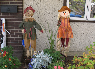 My scarecrow is the girl. Her name is Rosie. My husband’s scarecrow is named Dummy Jimmy Too Tall. I think Mark named him.