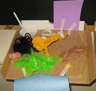 Yesterday I spent the afternoon volunteering in the boys’ class. They had an in-class field trip where they have a visitor come in armed with materials and stories and enrichment activities – in this case, the activities were related to their “Building” unit. Each child was to build a three dimensional zoo animal and enclosure – along the lines of a diorama. Dioramas! Fun! They were looking for parent volunteers and so off I went.