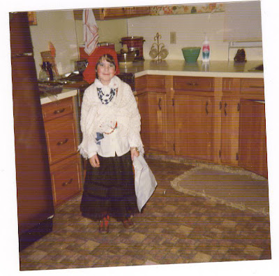 I was at my parents’ house on the weekend and made off with some old pictures, notably of me in Halloween costumes. Here is me at age six dressed as a gypsy: