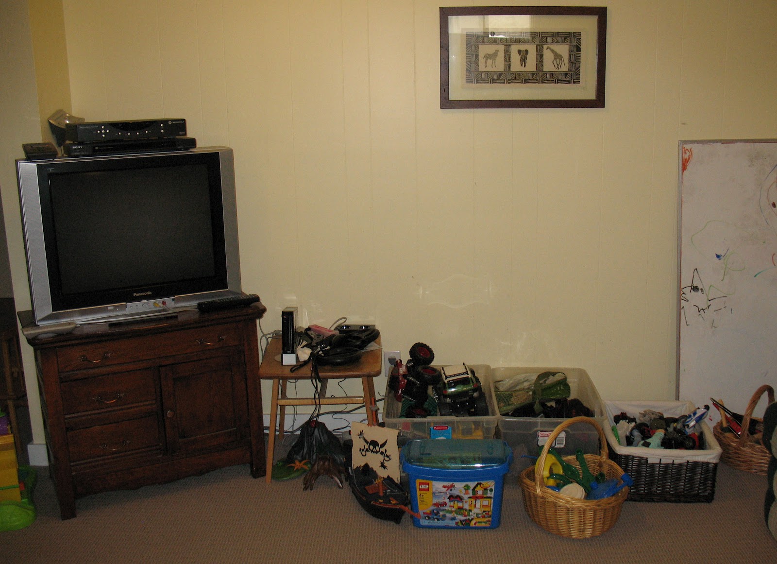 And here’s where the boys can play Wii and where our exercise equipment is: