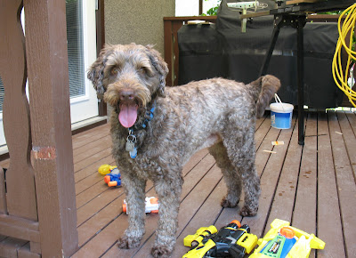 The dog retreated to the safety of the deck: