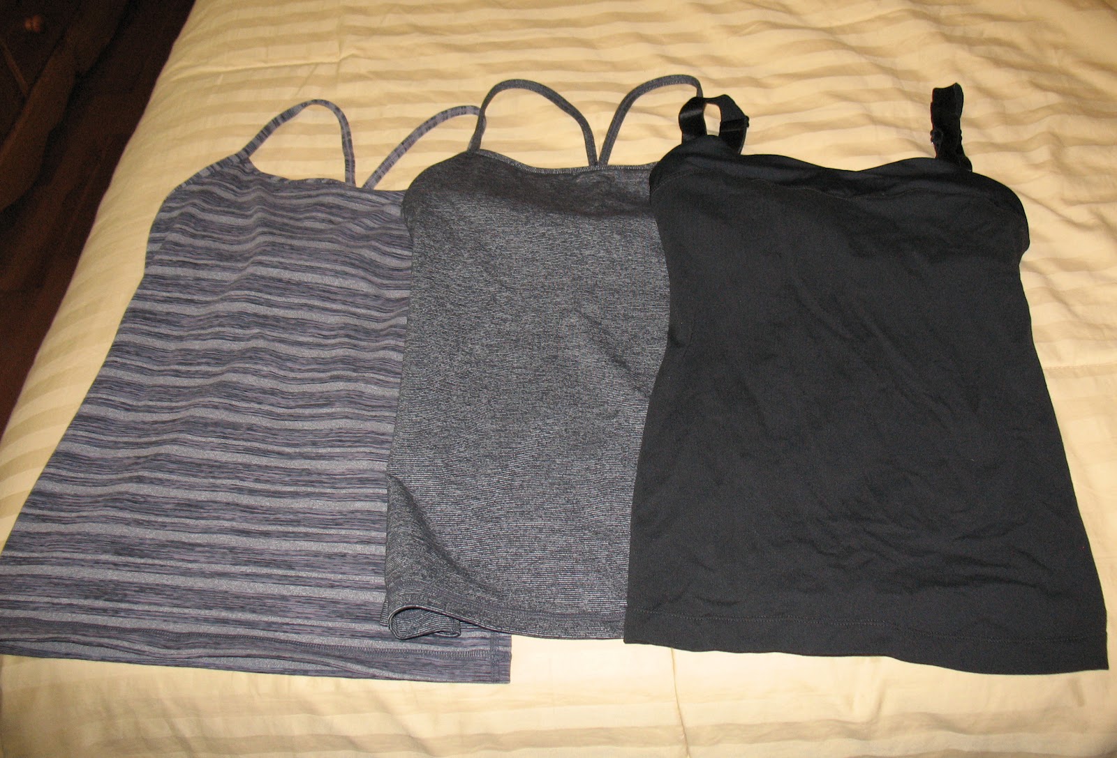 I wear a lot of tank tops, and my favourites are those with shelf bras. So I can be braless! But not in an alarming, scare-the-neighbours, depressingly deflated hippie-chick sort of way. But these tanks – from Lululemon – keep everything in, the straps don’t slip, and they are long enough for my liking. They are a bit pricey, but I have tanks that I bought five years ago that are still in mint condition after much washing and wearing. The caveat here is to purchase in a colour that I don’t tire of (black).