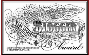 The rule was fifteen – FIFTEEN – blogs, but I have amended it to include blogs I am currently loving, and that I find inspiring.  After all, it is the Very Inspiring Blogger award!