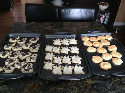 I spent a large portion of the day yesterday making these cookies for the bake sale.  In my world, first you make the cookies, then you get the power.  WORLD DOMINATION VIA THE HALLOWEEN DANCE BAKE SALE.  That’s my motto.