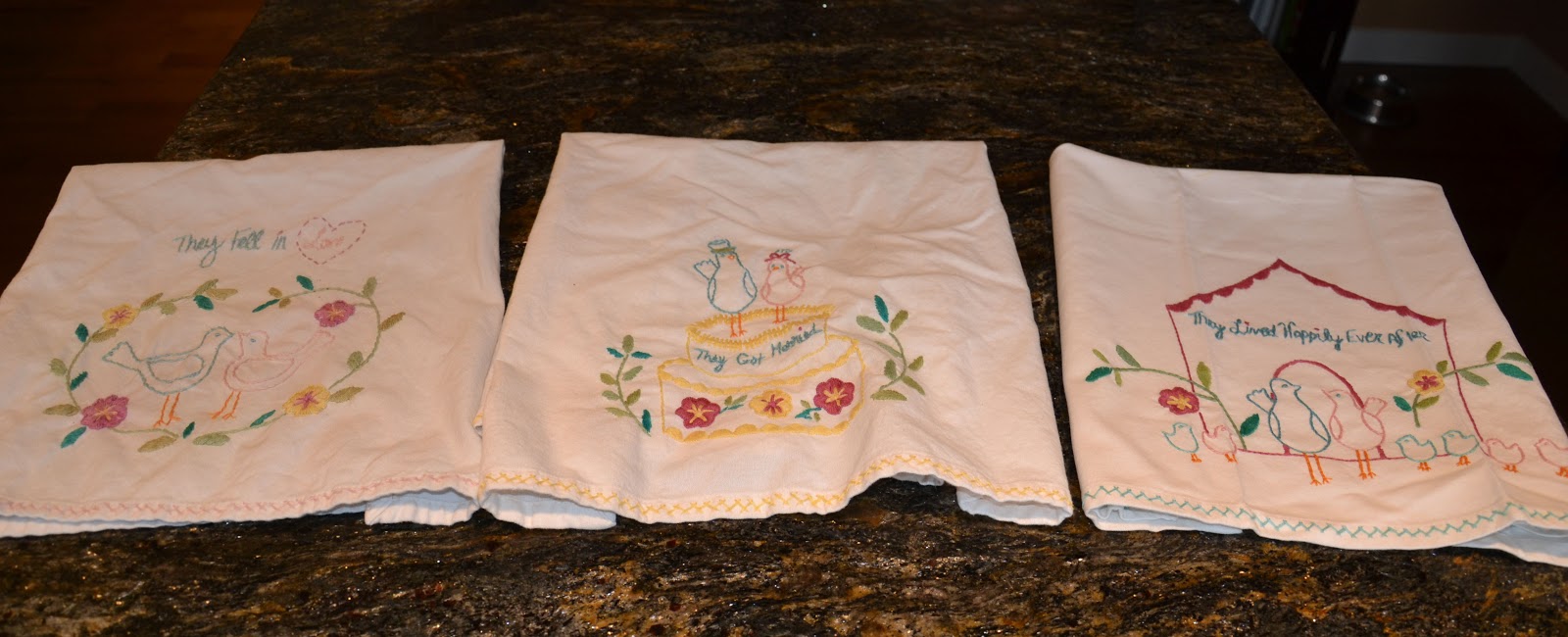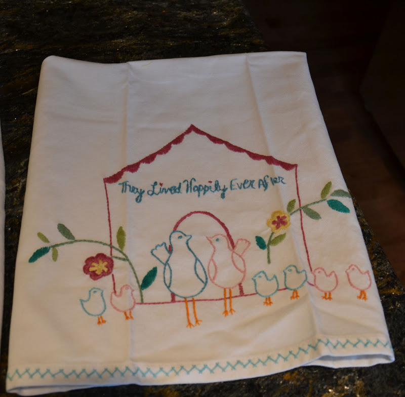I bought this set of three dishtowels (I know, DISHTOWELS are on my favourite things list) and they make me smile whenever I look at them, which is often, since I spend half my life in the kitchen. They say “They Fell In Love”, “They Got Married”, and “They Lived Happily Ever After.” Aw. They were probably meant for a wedding shower gift, but I bought them for myself and no regrets. Happily ever after. I always smile when I look at that, and imagine myself in a fairy-tale like existence, and think I AM living happily ever after! Then I go look for dog diarrhea and the mood dissipates somewhat.