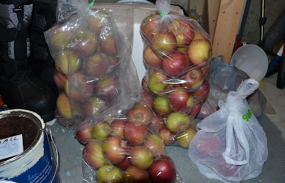 I keep our surplus apples in the crawl space. Right next to the hall paint, apparently.