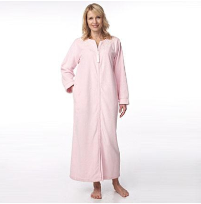 How the hell is that sweater ‘face-framing’ unless you wear it on your head? I think you could pull off the floor-length velour robe, though – and think of the warmth!