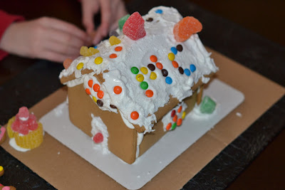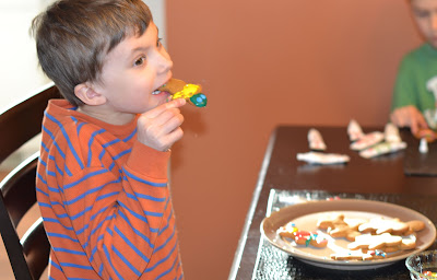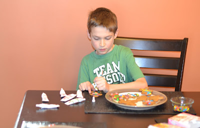 But!  Parcels are mailed, no one actually got run over in the parking lot (cue music: Grandma got run over by a reindeer), a miss is as good as a mile, and here it is, only two weeks until Christmas Eve.  Squee!  The kids had a three day weekend since parent/teacher interviews were on Friday, and so we spent a great deal of time with gingerbread and icing.