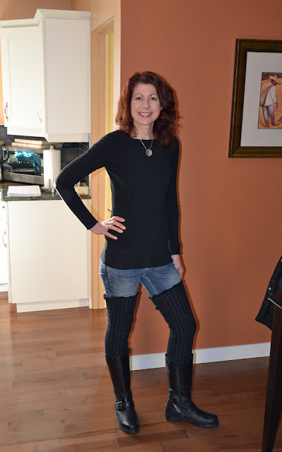 Your leg warmers are cute. They are like fuzzy buttless chaps!