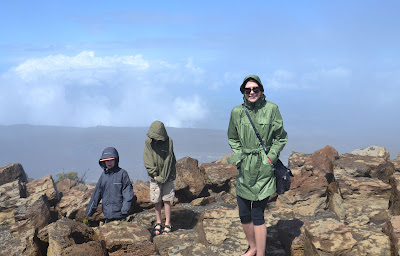 It wasn’t all warmth and sunshine though. My husband wanted to drive to the top of Halekala volcano, where it was over 10,000 feet of elevation, 36 degrees Fahrenheit, wet, and windy:
