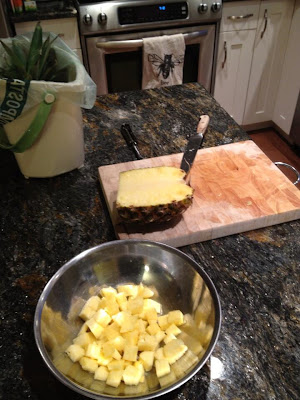 I spent the rest of the day spinning off the earth with excitement, and reading the user’s manual. I felt dangerously like Crazy Eddie from Friends, the guy who was briefly Chandler’s roommate and who dehydrated everything. This is a strawberry! This is a cantaloupe! Pineapples were on sale last week at my local grocery store, and fortuitously I had picked one up. You’re first, Mr. Pineapple.