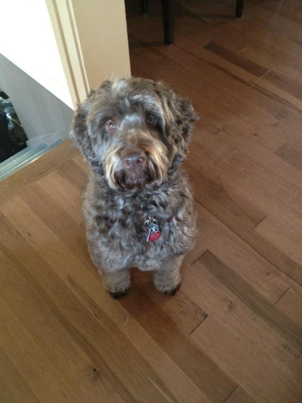 Ah, Barkley. Barkley my sweet, cuddly dog who looks like a Gund, a soft and huggable stuffed animal. My adorable ball of fur. My fluffy friend. I’m guessing that, perhaps, a mouse had found its way into our yard. Perhaps due to the recent warm day and subsequent cold snap, this mouse may not have been as quick on the draw as mice usually are. In any case, the mouse ended up meeting its maker. Barkley acted on his superior position in the food chain; the circle of life, enacted in my backyard.