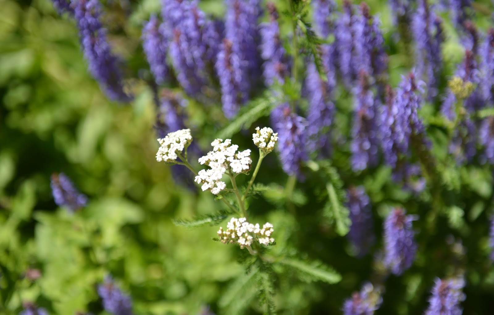 I know I should pull it out, but I find it charming how this one sprig of yarrow has found its way into the blue sage.