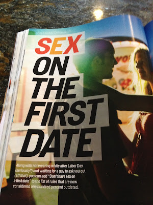 Sex on the First Date: article concludes that, like the rule “no white after Labour Day”, “Don’t have sex on the first date” is considered to be an outdated one. Wait, what? First of all, no white after Labour Day is a very good rule. Let’s keep that one, mmmkay? Also? Now, I haven’t been on the dating scene since my husband and I “hooked up” in 1998, but I’m not sure sex on the first date as a faux pas should be equated with wearing white pants. But then again, I’m pretty sure I am not the target demographic here.