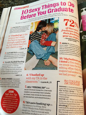 A few weeks ago, I was feeling kind of blue, and so my husband took the boys for an outing and came home with snacks and a magazine for me. Cosmopolitan magazine.