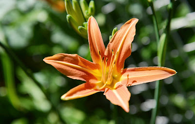 This is the daylily that, like love, will go on. About twelve years ago my husband accidentally sprayed it with weed killer, seven years ago we paved over the flower bed with stamped concrete, and somehow it has grown into a four foot long patch of daylilies with dozens of blooms. Lazarus in flower form, if you will. Isn’t it pretty?