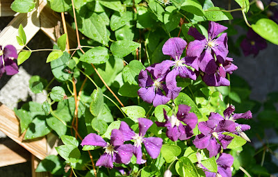 My much-loved and pampered clematis, which is blooming and filling up the entire trellis.
