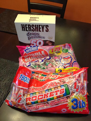 Given that we average between five and ten trick-or-treaters a year, and, on a related note, since my kids are two of the very few that prowl our very unpopular street they are the recipients of massive neighbourly generosity, by tomorrow I predict that we will have approximately one thousand little candies in the house. I don’t know a) why I bought so much, or b) why I bought the one candy that I cannot leave alone – Rockets. Mmmm. Artificial dextrose-y goodness. They are also vegan. It should be part of their marketing slogan: vegan and gluten free! Really, the Rockets people should be calling me.