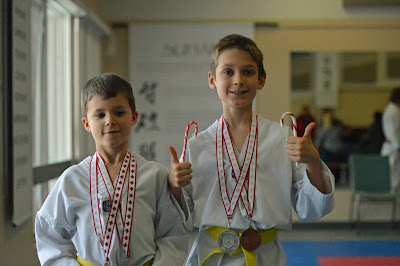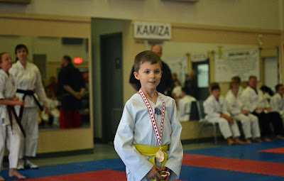 I’m not sure how you parents of children in highly competitive sports do it. This weekend was the Candy Cane Shiah at the boys’ karate dojo, and the boys each competed in a kata and a weapons division. The whole time I was a bundle of nerves and it was the Candy Cane Shiah, a very friendly and fun competiton. I felt like Aly Raisman’s mother, except all that dialogue was going on in my head and also, I didn’t really know the routines that they were doing. STICK IT STICK IT YEAHHHHHH. Mark got a bronze in kata and a silver in weapons in his division, and Jake got a silver in kata and a GOLD in weapons. This is what he looked like after winning: