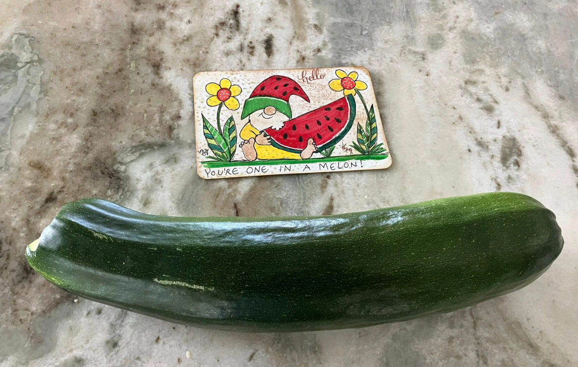 How fun to see the gnome postcard next to your monster zucchini! I’m feeling so seen and happy to be mentioned twice in this post! ❤️ You are such a gorgeous babe with your new haircut and new clothes, and your Rex accessory! I’m so sorry that mosquitoes cause you such an awful reaction. They really are “rental houses for the souls of the cruel!” (Good phrase!) I guess I’m lucky that I just have “normal” difficulties with mosquitoes. Living in a dry, windy area also helps. The wind can actually blow the mosquitoes right on by! The first week of summer has been lovely here. My husband and I celebrated our 32nd anniversary!