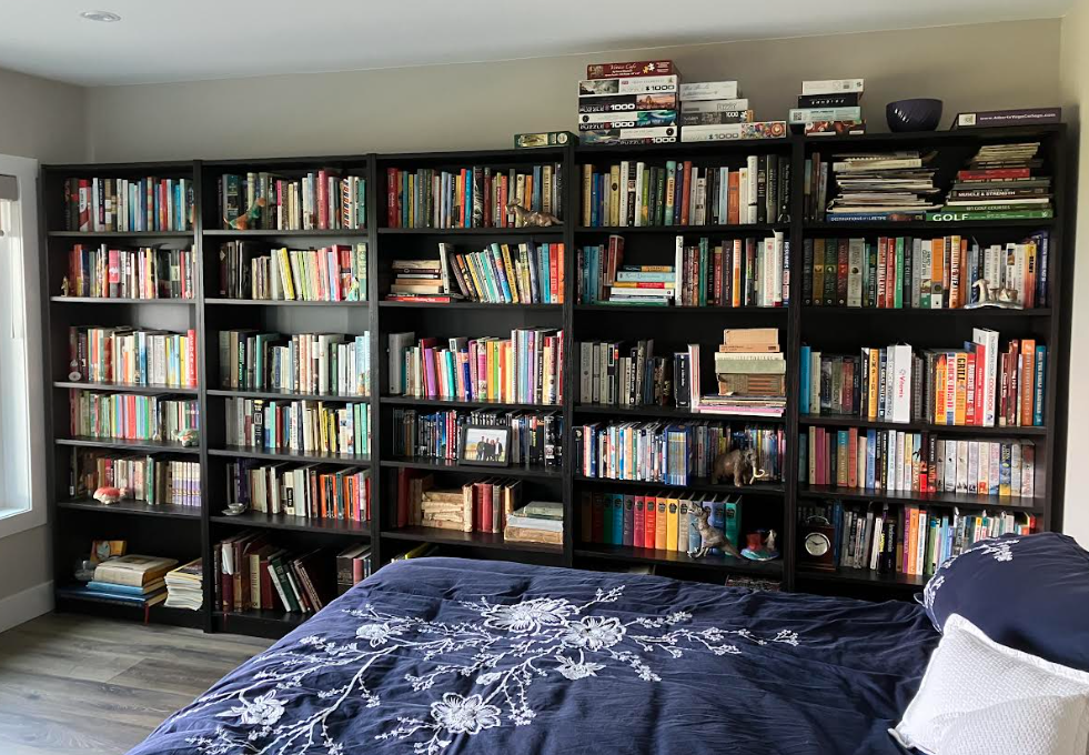 I don’t buy a lot of books, but I cannot resist a Little Free Library, so a lot of our books are books I pick up from various LFLs around town. I will buy books as gifts, or if I’m travelling, I will often buy books because I don’t want to take library books on the road.