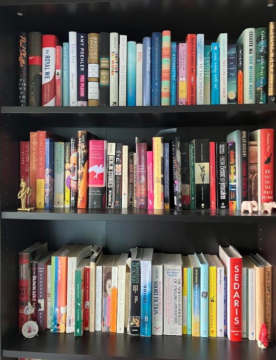 I love a haphazard bookshelf process, especially one that makes sense only to you. That’s basically what my shelves are like. One shelf is organized by author last one, another shelf by color, and a different shelf by genre. Nothing like keeping people on their toes!