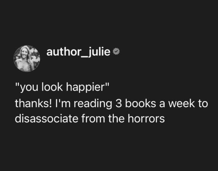 I love the “you look happier” meme! I’m trying to read more instead of scrolling social media, and it’s definitely helping.