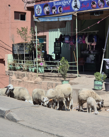 I love all the photos, but especially the ones of you in the cooking class- you definitely look like you’re having fun! Thanks for answering my question about where you stayed in the Sahara- I think i asked if you stayed in a tent, or are there hotels??? Obviously- you stayed in a “tent-hotel!” That would be my kind of camping as well. I can see why that adventure was your favorite- it looks and sounds INCREDIBLE. It must have been astonishing to see camels all over the place, and those sheep in front of the barbershop… hee hee.