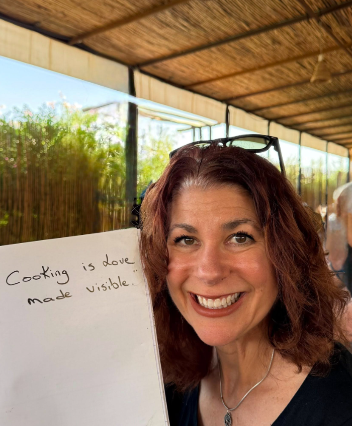 One of the things my husband and I were dreading, that ended up being an incredible and fun experience, was a cooking class. This class took place on a little farm outside of Marrakech, and was run by a women’s collective created to employ and empower women in the area. I figured that this would be a dull thing, but nothing could be further from the truth: when we got there the young women started playing music, including ABBA, and I couldn’t help but dance as we created our salads and tagines.