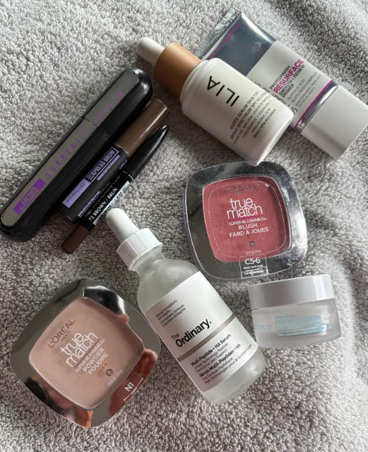 Next up, L’Oreal blush and Maybelline Express Brow to smooth out the greying, patchy eyebrows.